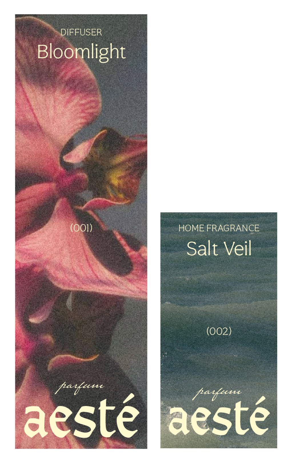 Aesté est une marque fictive de parfum d’intérieur pour laquelle nous avons créé une identité visuelle et un packaging unique.